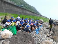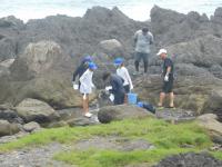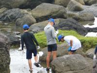 室戸青少年自然の家 2日目その2 2023年7月9日 17時11分 午後からは磯観察です。太平洋の大波をバックに海岸で生き物探しでした。生徒は魚やえびをなどいろいろな生き物を見つけては、歓声あげていました。