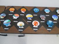 写真は、美術の時間に取り組んだ貝絵アートで、ふるさと長浜をテーマに描いたものです。