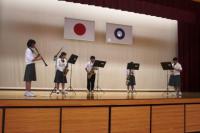 選手たちは吹奏楽部の演奏で入場し、軟式野球部、サッカー部、男子卓球部、女子バレーボール部、女子ソフトテニス部がそれぞれ決意発表をしました。