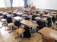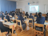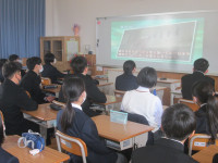 前半は各学級で南海トラフ大地震と津波について学習する動画を視聴です。