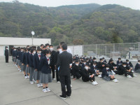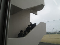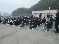 後半は地震を想定した訓練です。そして、津波警報が発表されたことを想定し、屋上に避難をしました。