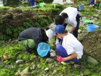 今日は、ふるさと文化部と長高水族館部との交流会で、沖浦海岸の潮だまり(タイドプール)の観察と水槽で飼育する生物採取を行いました。
