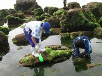 2023年7月6日 19時11分今日は、ふるさと文化部と長高水族館部との交流会で、沖浦海岸の潮だまり(タイドプール)の観察と水槽で飼育する生物採取を行いました。